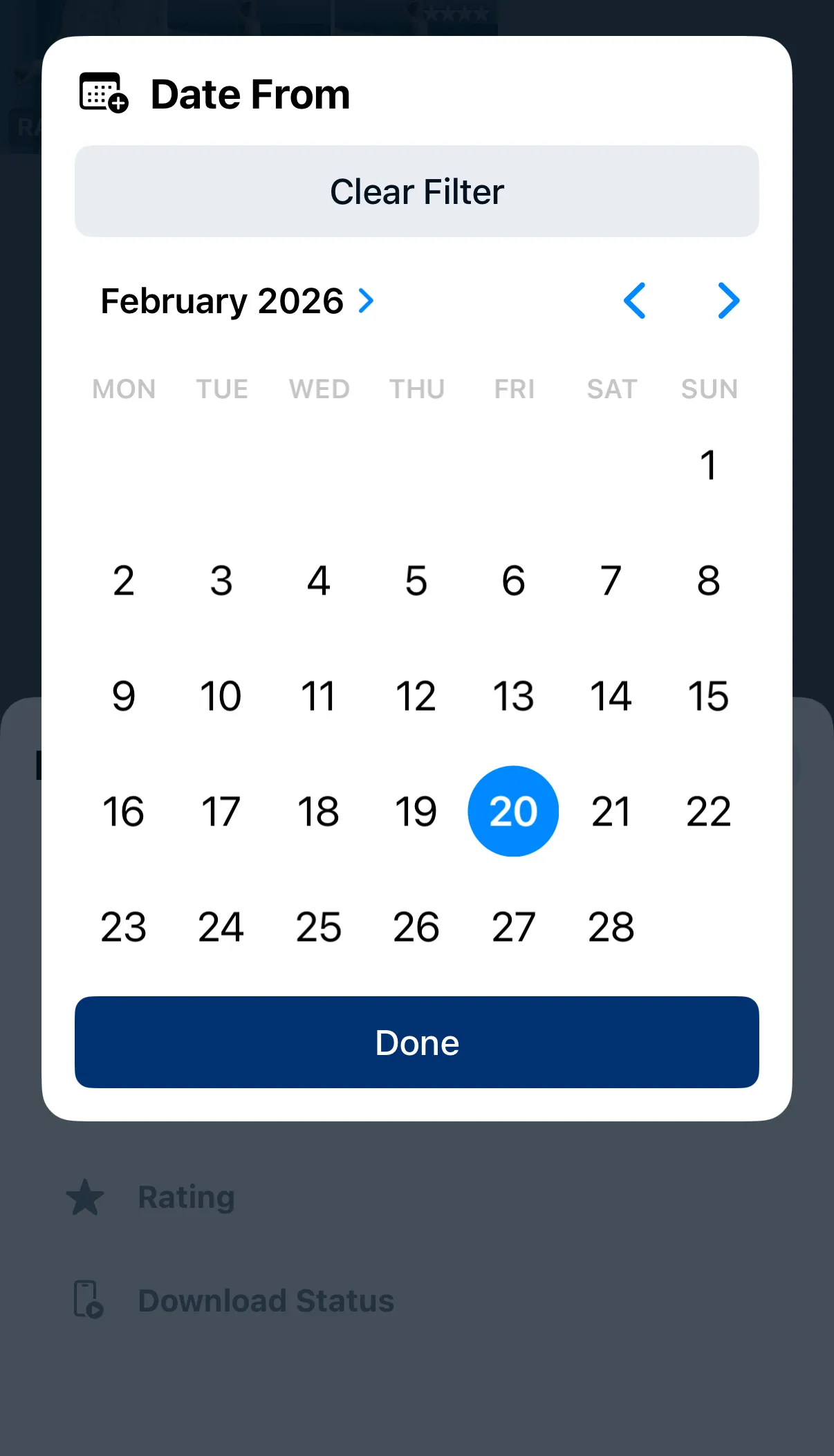 | Date range | Set a start date, end date, or both |