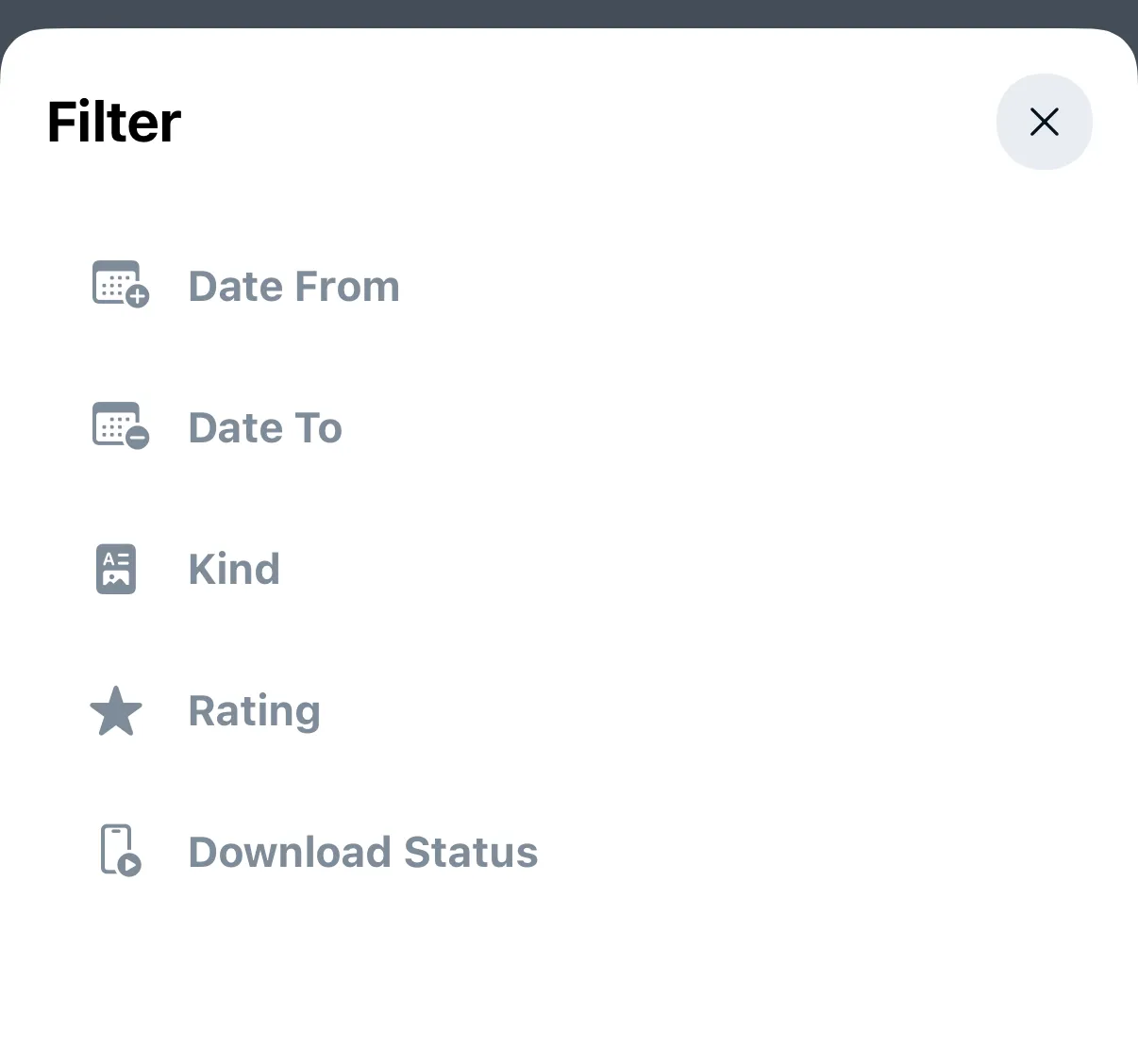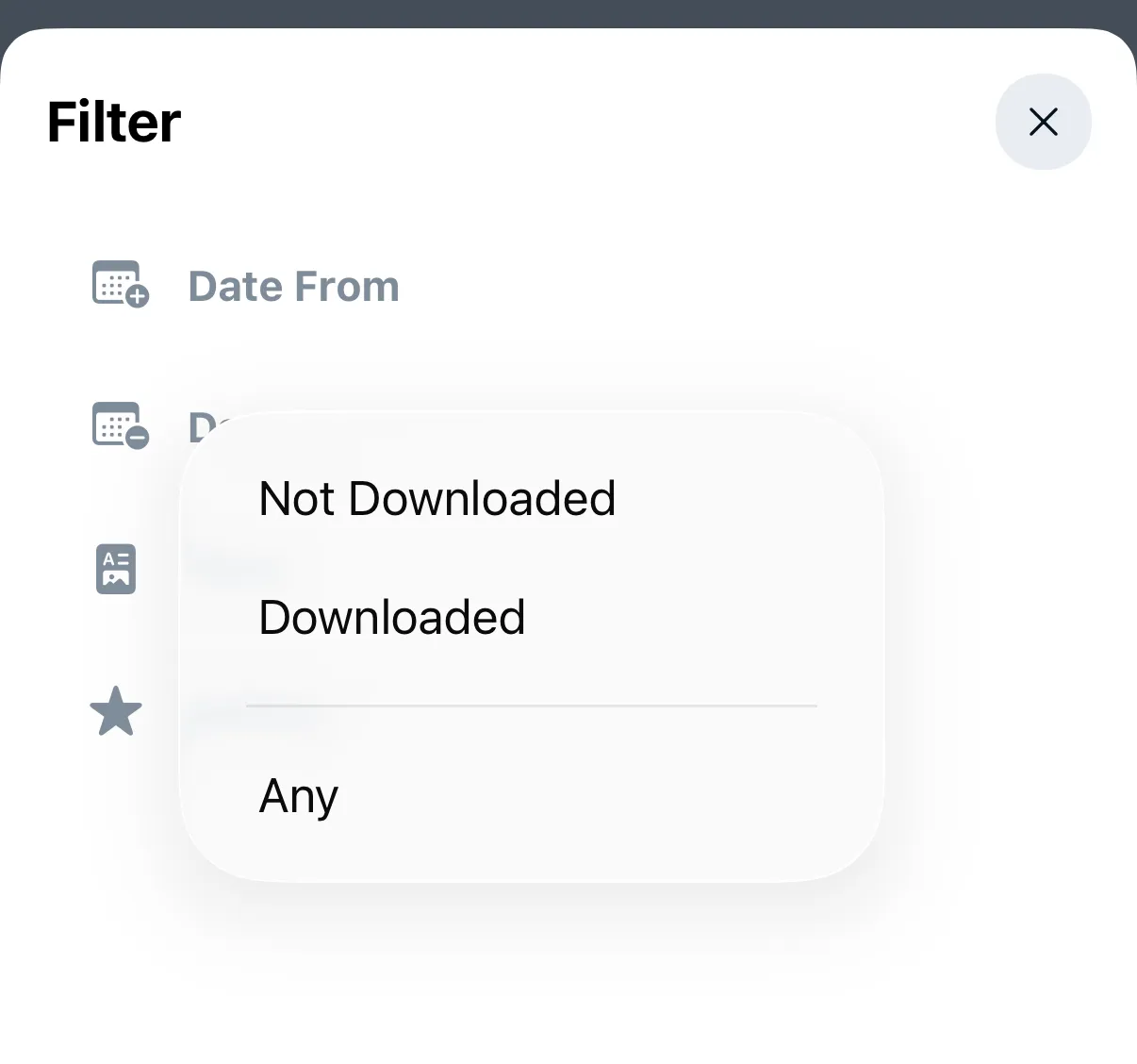 Select between downloaded and not downloaded photos and videos.