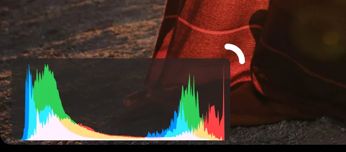 - Peaks on the left — the image has a lot of dark tones. If the graph is pushed against the left edge, shadows may be clipped (detail lost in dark areas).