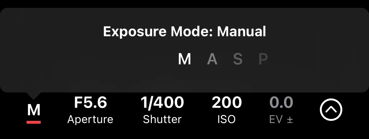 On cameras that allow remote mode switching (some Sony models), you can change the mode by tapping the exposure mode indicator in the app.
